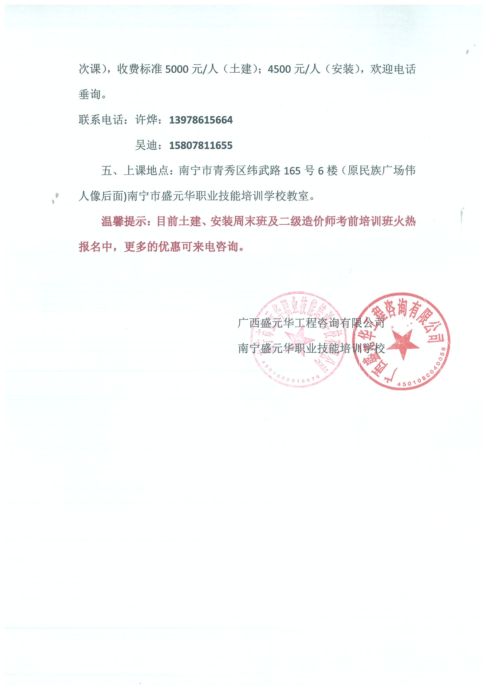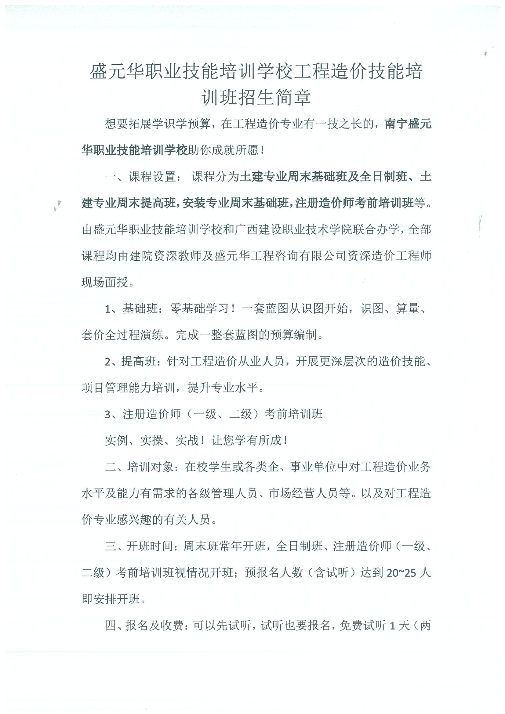 | 盛元华职业技能培训学校工程造价培训班办学简报及招生简章 |