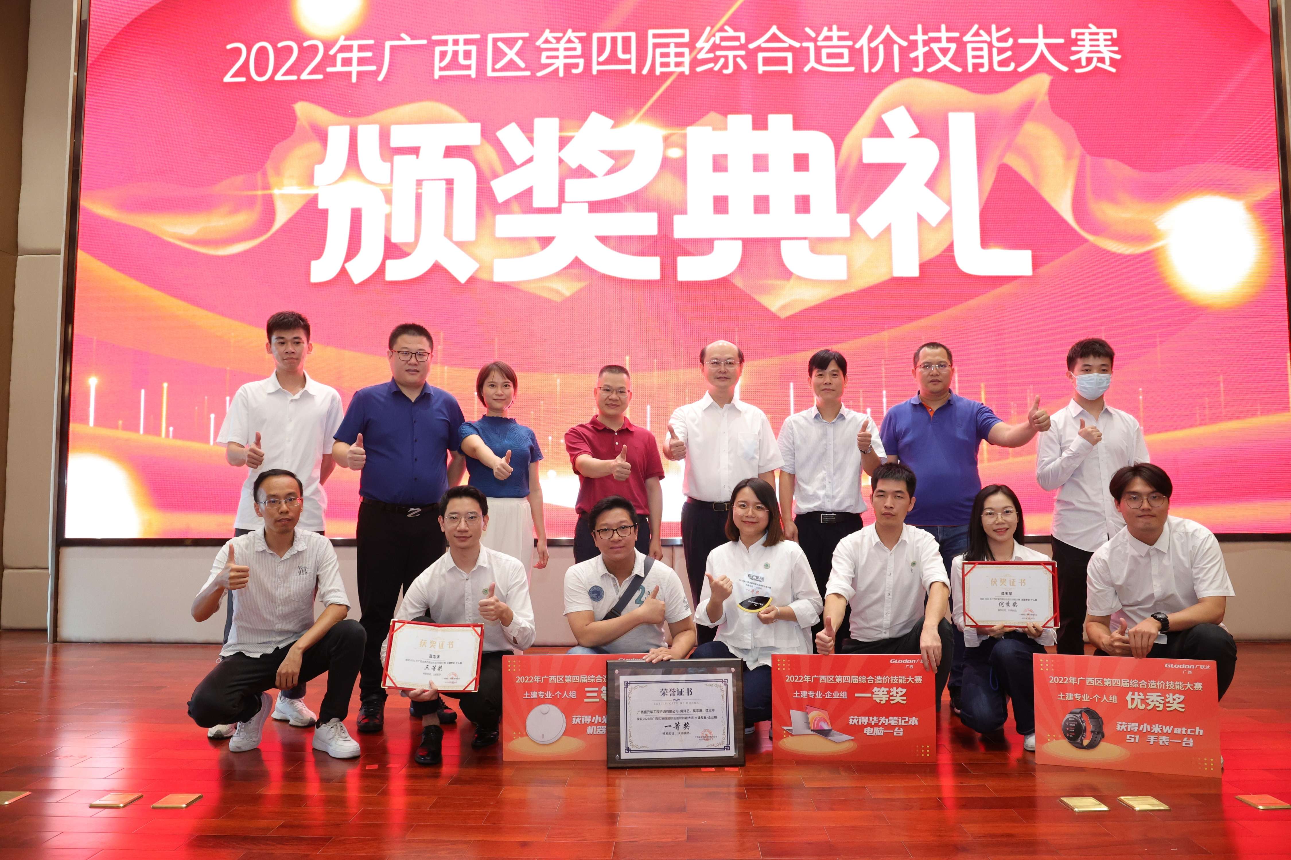 2022年广西区第四届综合造价技能大赛的系列比赛已于9月15日圆满落下帷幕,公司参赛团队以优异的成绩在本届技能大赛中再次收获荣誉:荣获土建专业-企业组一等奖,土建专业-个人组三等奖及优秀奖。